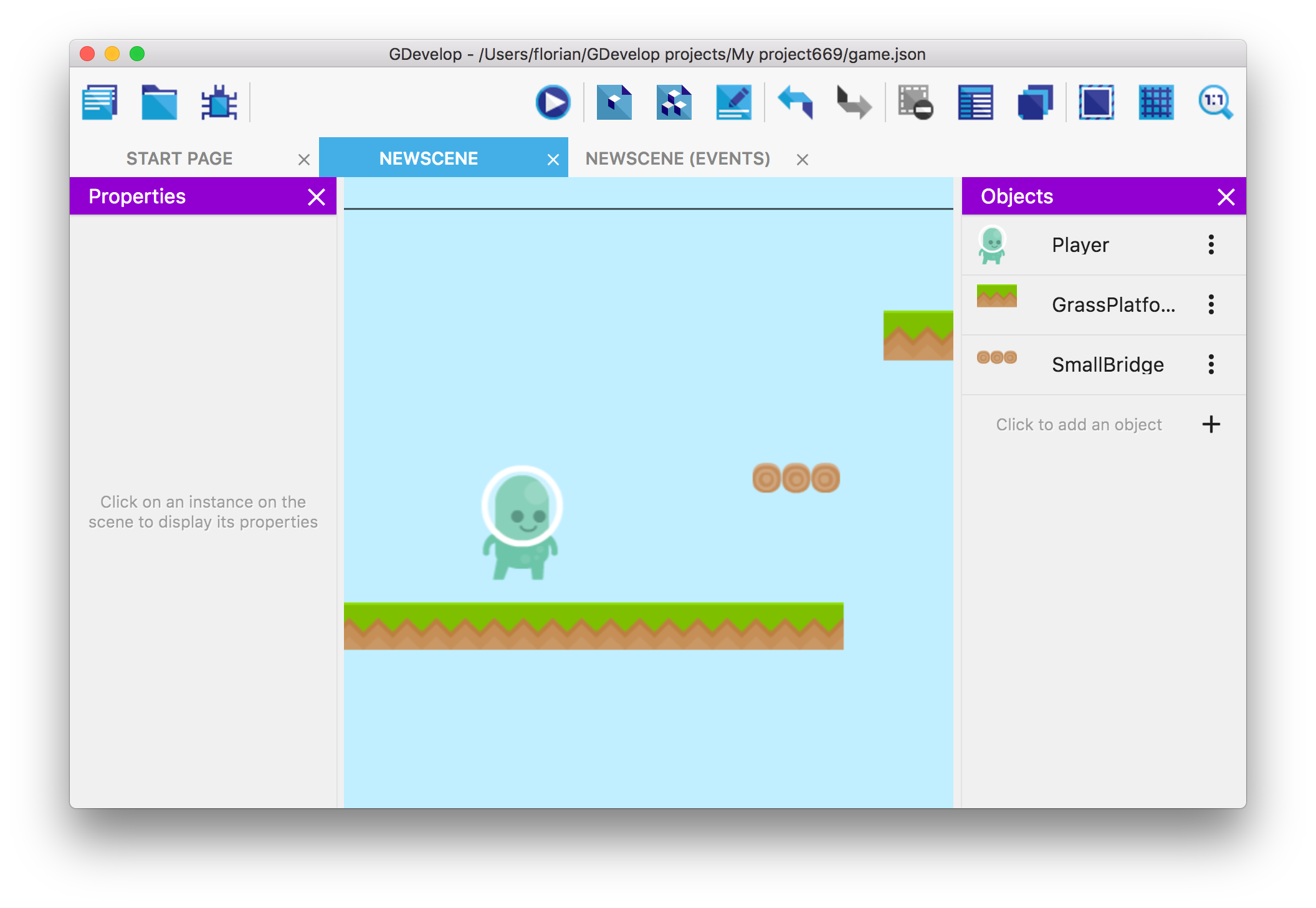 The level is still quite empty. Let's add some background objects to make it more pretty. We'll then add coins to collect and enemies!