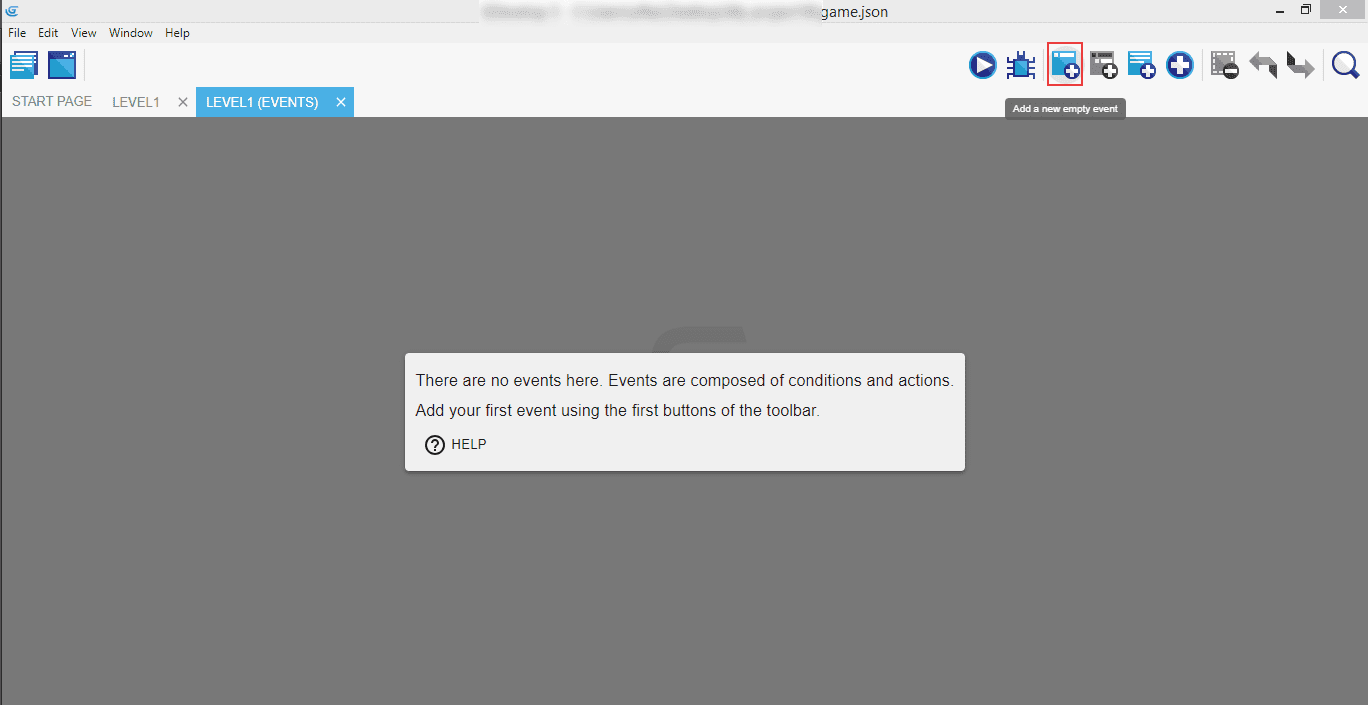 In the top right section of the editor you will see a few icons - click on the third one from the left: light blue square with a dark blue plus sign. When you hover over it the description will say "Add a new empty event".
