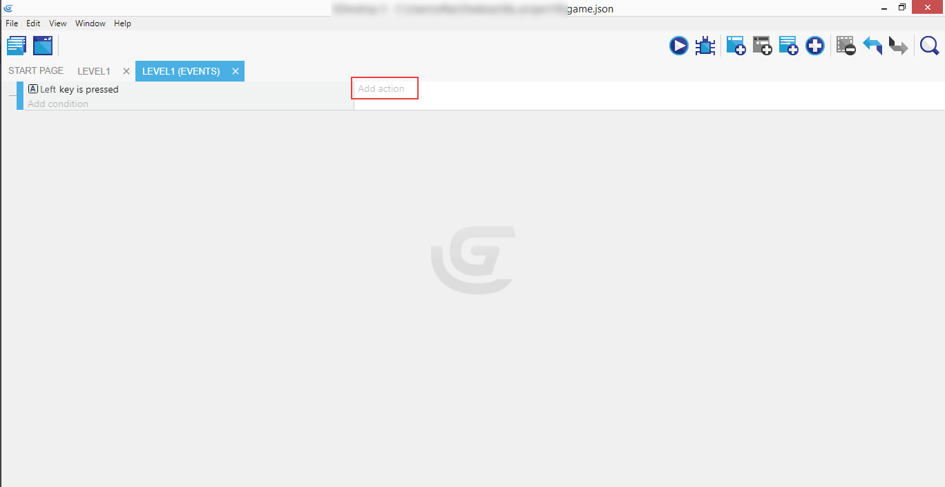 You can see the final version of the event we just completed - with conditions on the left, and action on the right: when you press the left key, then it will move (by applying the force of -450 units on the X axis and ignoring the Y axis with 0 value) to the left edge of the screen.